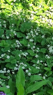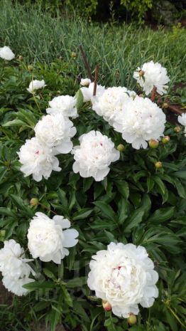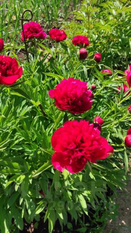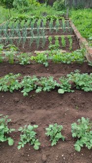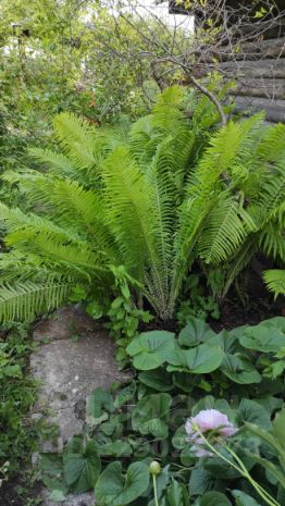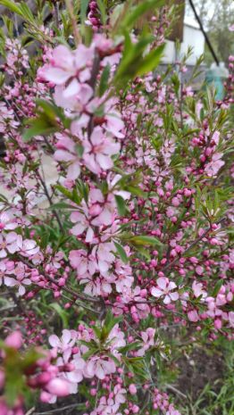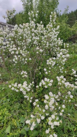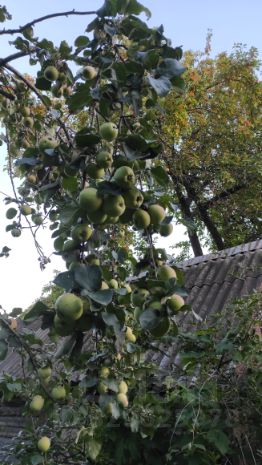Много деревьев вишни разных сортов, 2 яблони: одна из них антоновка, другая - среднеспелый сорт, кусты малины, крыжовника, черной и красной смородины, жимолости, миндаль декоративный, чубушник.