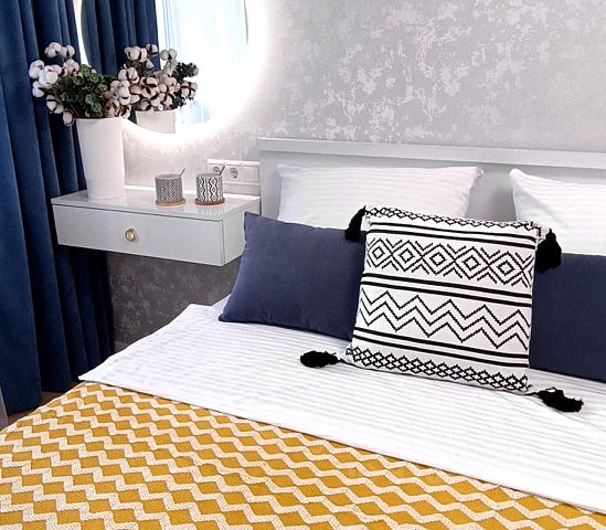 В квартире 1 двуспальная кровать и 1 односпальная, 1 диван, который раскладывается. Из техники- холодильник, плита, микроволновка, стиральная машина , водонагреватель, утюг, 2 телевизора, фен.