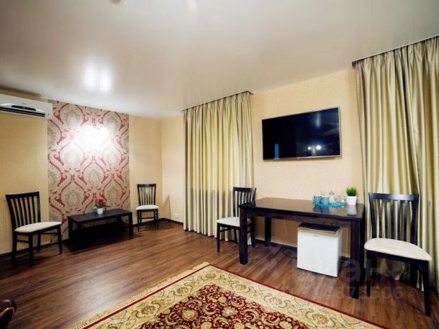 В номере находится двуспальная кровать, прикроватные тумбы, шкаф для одежды, стол, стул, телевизор, холодильник, кондиционер, обогреватель, wi-fi. В ванной комнате находится душевая кабина, туалет, раковина, косметические принадлежности, фен, халаты, тапочки.