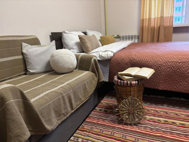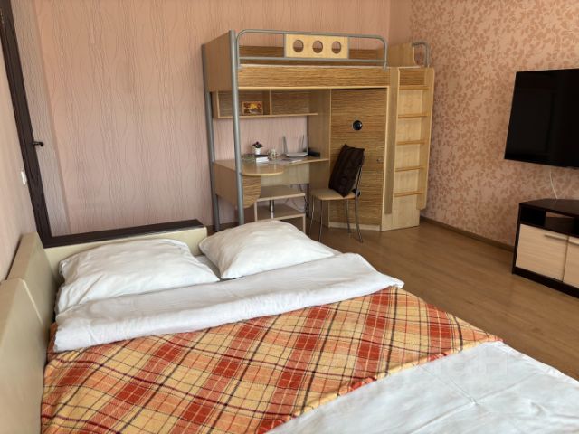 Уютная студия в новом доме ждёт своих гостей. Максимальное размещение - 4 чел. Для вашего удобства 2-спальная кровать с мягким матрасом и раскладывающихся диван В квартире новый холодильник и новая электрическая 2х-комфорочная плитка. Для удобства гостей выделена кухонная зона со всей необходимой посудой. В ванной комнате установлена стиральная машина и стандартная ванна на 170 см Рядом расположены магазины и отличный бассейн с чистейшей водой