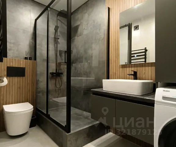 - Санузел: ванна, современная отделка, зеркало с подсветкой, свежие полотенца.